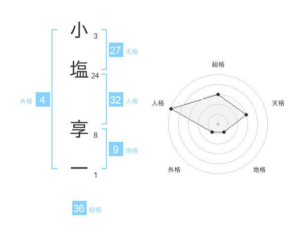 小塩 享一さんの総格は36画の3点!