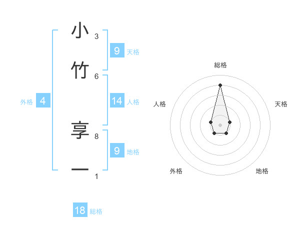 小竹 享一さんの総格は18画の4点!