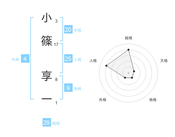 小篠 享一さんの総格は29画の4点!