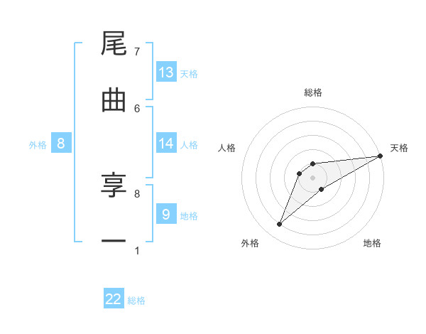 尾曲 享一さんの総格は22画の1点!
