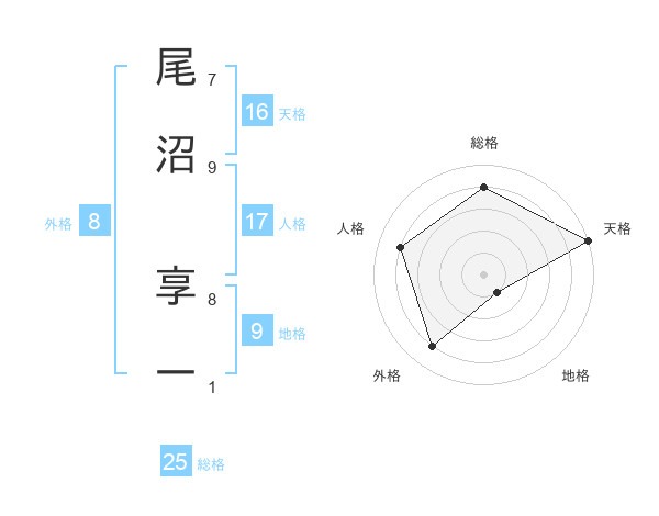 尾沼 享一さんを姓名の画数から五運を鑑定
