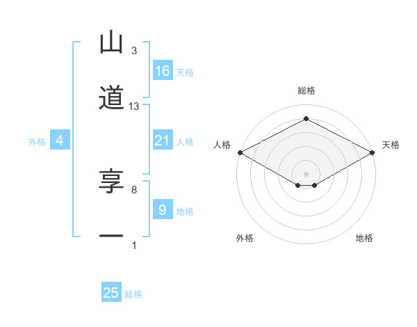 山道 享一さんの総格は25画の4点!