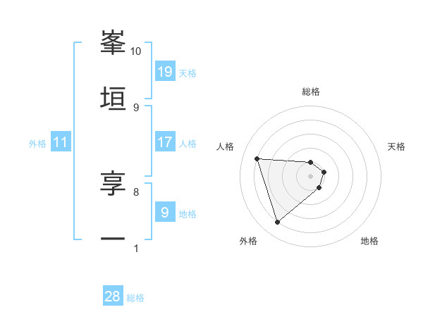 峯垣 享一さんを姓名の画数から五運を鑑定