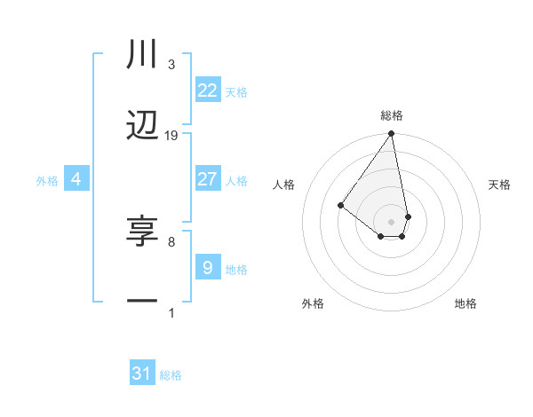 川辺 享一さんの総格は31画の5点!