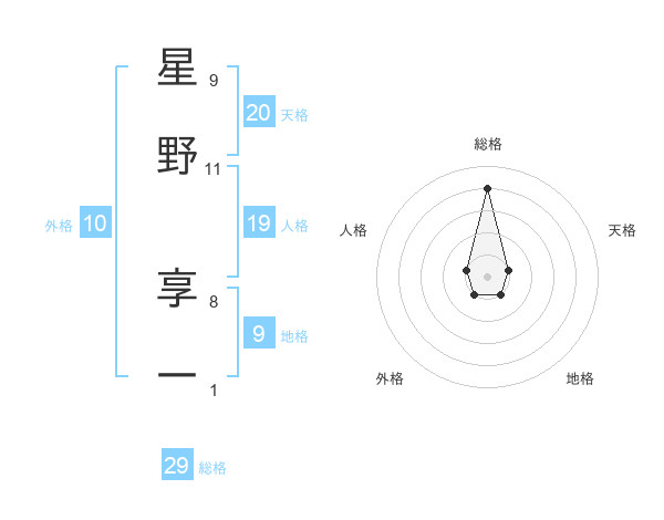 星野 享一さんの総格は29画の4点!