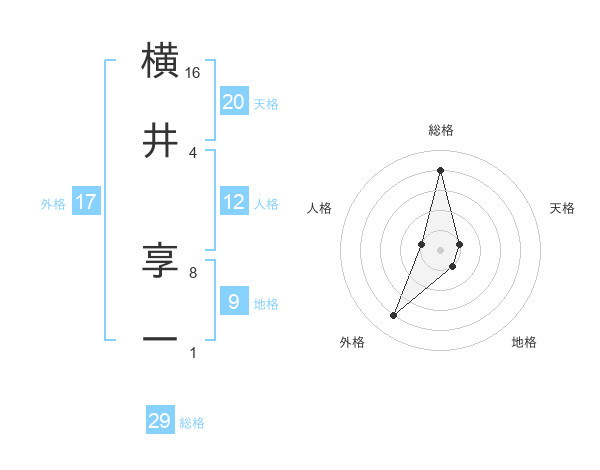 横井 享一さんの総格は29画の4点!