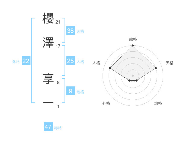 櫻澤 享一さんの総格は47画の5点!