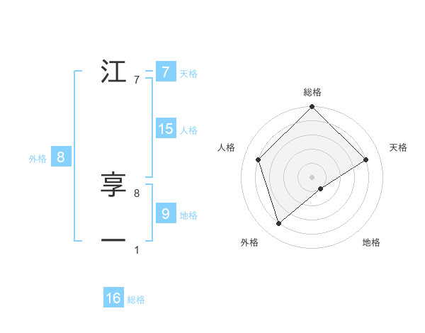 江 享一さんの総格は16画の5点!