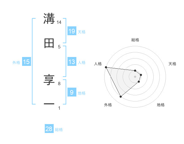 溝田 享一さんの天格は19画の1点!