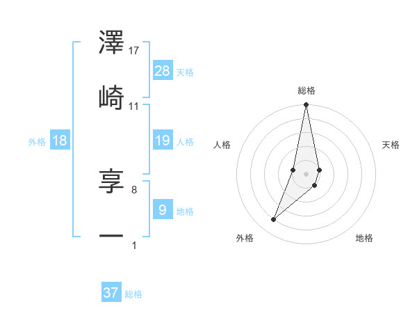 澤崎 享一さんの総格は37画の5点!