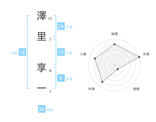 澤里 享一さんの総格は33画の4点!