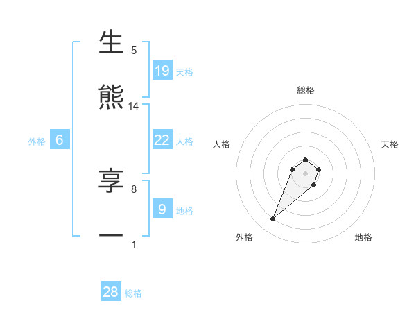生熊 享一さんの総格は28画の1点!