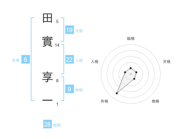 田實 享一さんの総格は28画の1点!