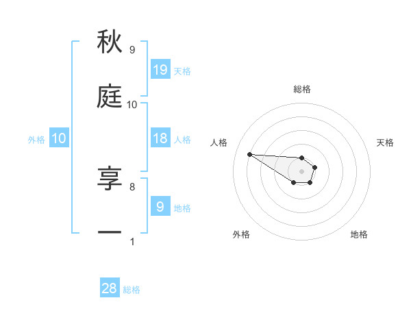 秋庭 享一さんの天格は19画の1点!