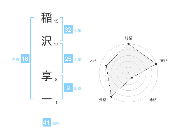 稲沢 享一さんを姓名の画数から五運を鑑定