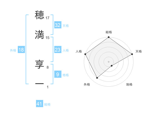 穂満 享一さんの天格は32画の5点!