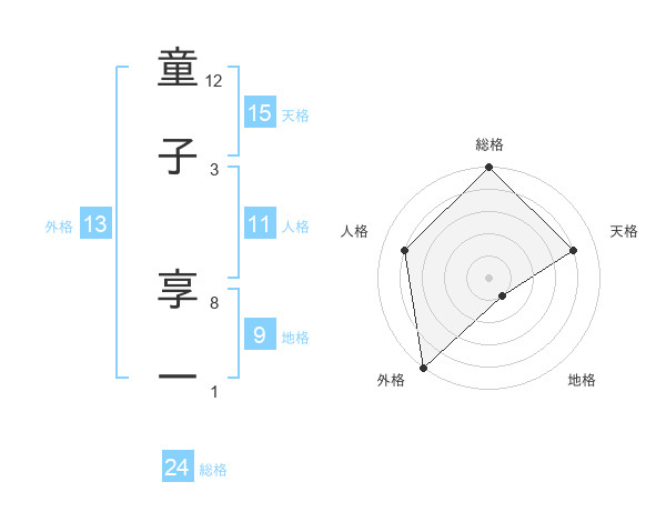 童子 享一さんの総格は24画の5点!