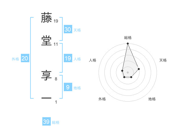 藤堂 享一さんの総格は39画の5点!