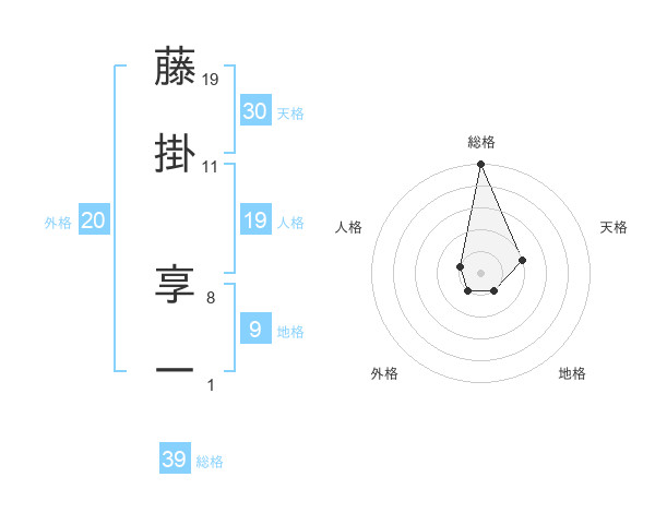 藤掛 享一さんを姓名の画数から五運を鑑定