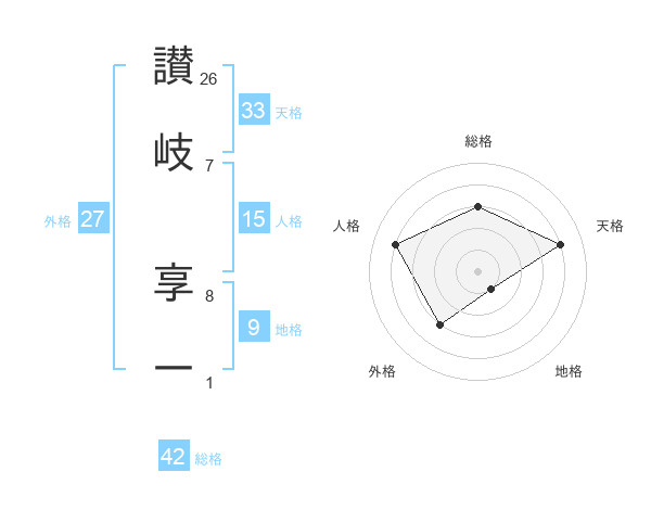 讃岐 享一さんの総格は42画の3点!