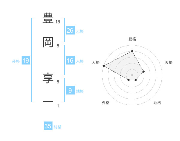 豊岡 享一さんの総格は35画の4点!