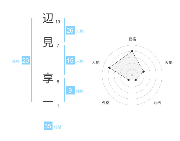 辺見 享一さんの総格は35画の4点!