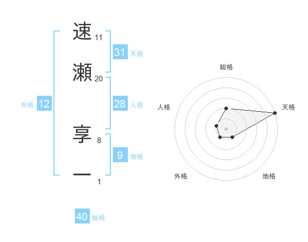 速瀬 享一さんを姓名の画数から五運を鑑定