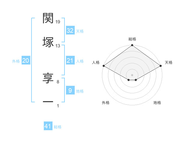 関塚 享一さんの人格は21画の5点!