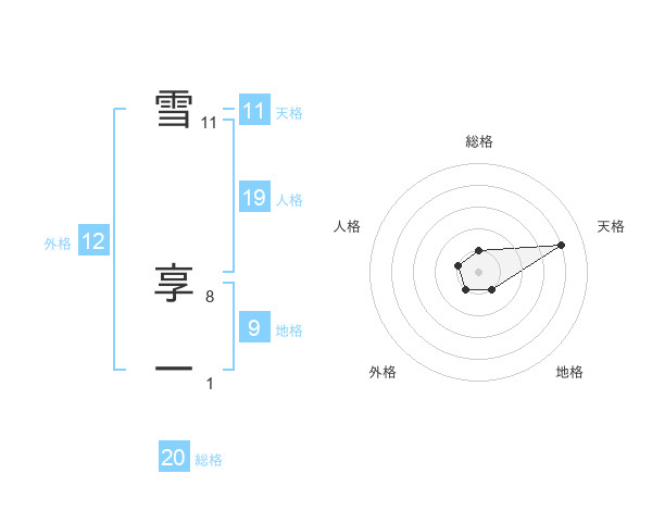 雪 享一さんの総格は20画の1点!