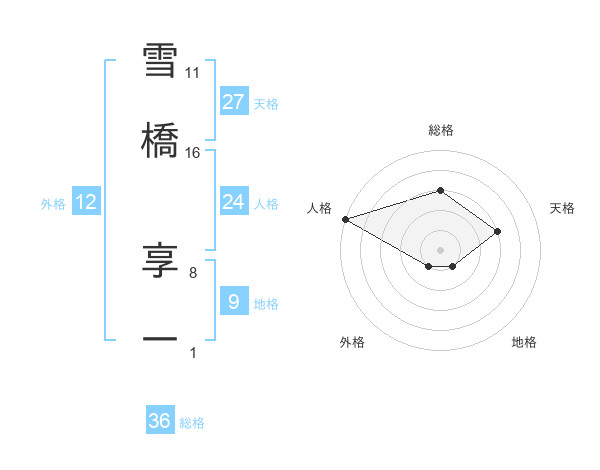 雪橋 享一さんの総格は36画の3点!