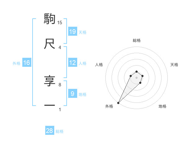駒尺 享一さんの天格は19画の1点!