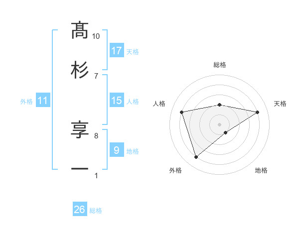 髙杉 享一さんを姓名の画数から五運を鑑定