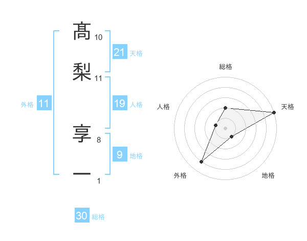 髙梨 享一さんの総格は30画の2点!