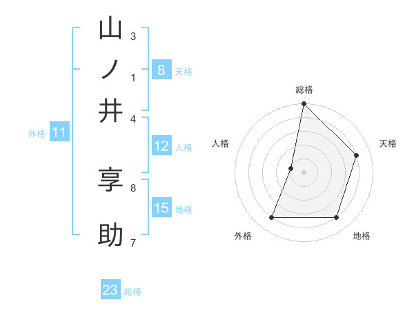 山ノ井 享助さんを姓名の画数から五運を鑑定