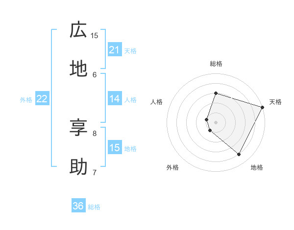 広地 享助さんの天格は21画の5点!