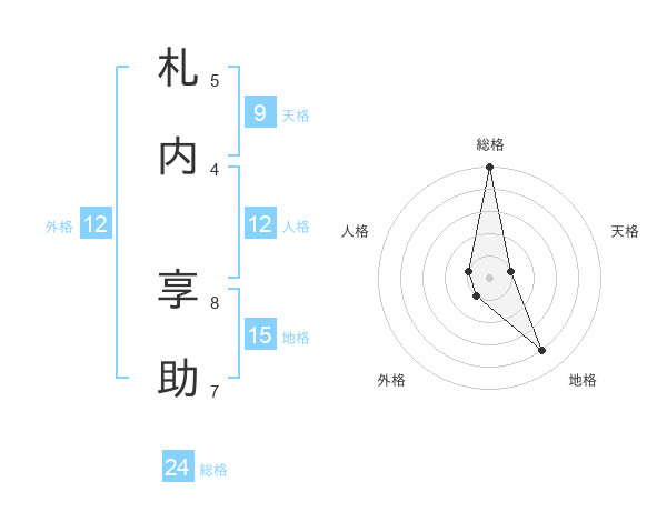 札内 享助さんの総格は24画の5点!