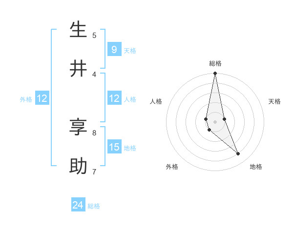 生井 享助さんの総格は24画の5点!