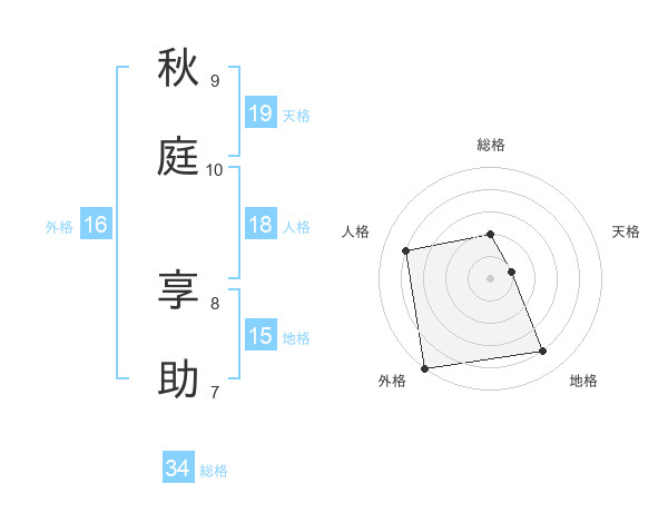 秋庭 享助さんを姓名の画数から五運を鑑定