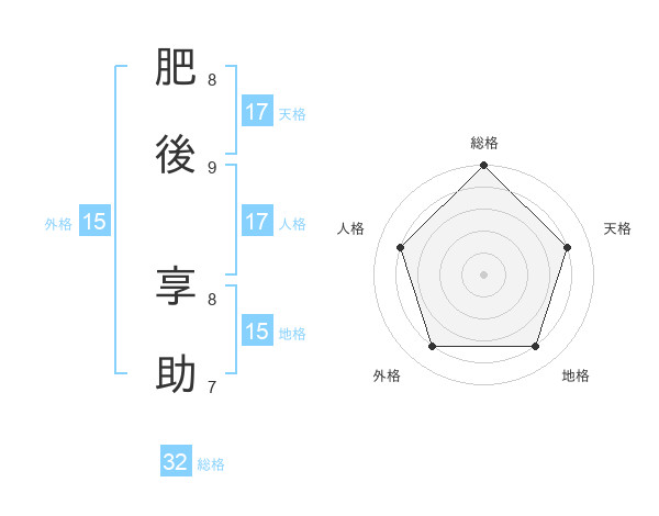 肥後 享助さんの総格は32画の5点!
