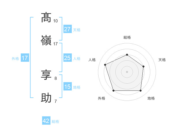 髙嶺 享助さんの外格は17画の4点!