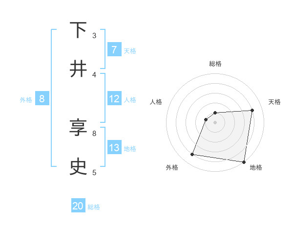 下井 享史さんの地格は13画の5点!