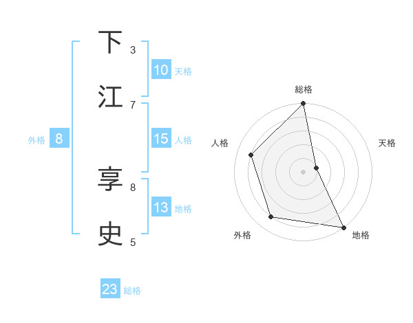 下江 享史さんの総格は23画の5点!