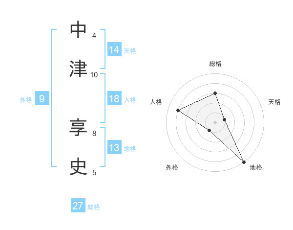 中津 享史さんの総格は27画の3点!