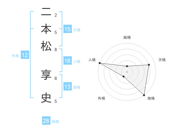 二本松 享史さんの地格は13画の5点!