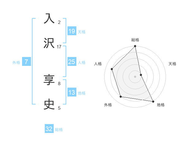 入沢 享史さんの総格は32画の5点!