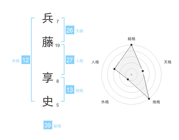兵藤 享史さんの総格は39画の5点!