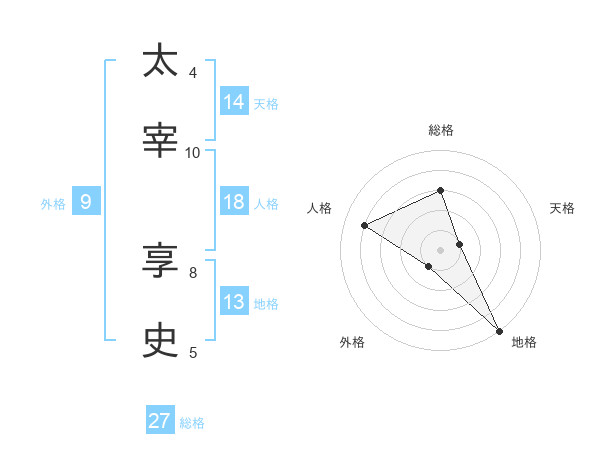 太宰 享史さんの総格は27画の3点!