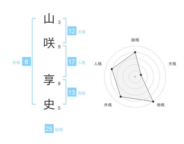 山咲 享史さんの天格は12画の1点!