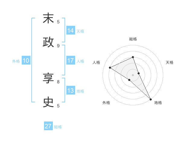 家系が持つ宿命的な運勢を表します。祖先から受け継いだ苗字ですので自分の力が及びません。家柄を象徴します。