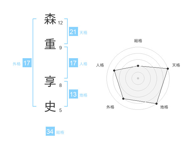 森重 享史さんの天格は21画の5点!
